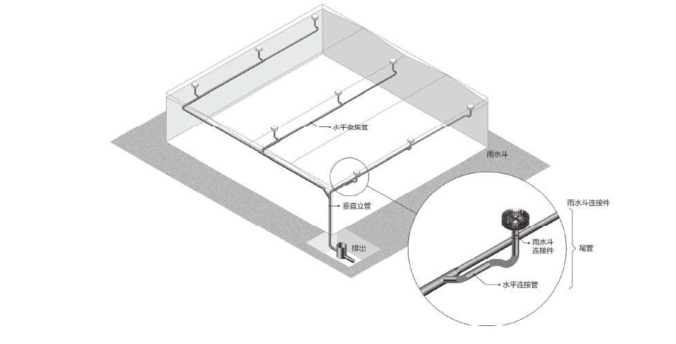 在傳統的重力式屋面雨水排水系統 中,重力是雨水排放的唯一動力,而在虹吸系 統中由重力引起的真空將大大增加系統的排水功能當下大雨時可以通過阻止空氣被吸入雨水斗內而產生虹吸效果特殊設計的帶有空氣阻隔和反波渦功能罩蓋的雨水斗只允許水 流入斗內缺隔斷空氣的進入,從而達到了虹吸壓力流。