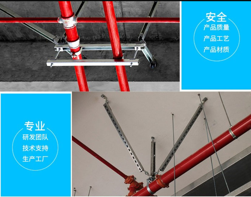 抗震支架是經抗震加固后的建筑給水排水、消防、供暖、通風、空調、燃氣、熱力、電力、通訊等機電工程設施,當遭遇到本地區抗震設防烈度的地震發生時,可以達到減輕地震破壞,減少和盡可能防止次生災害的發生,從而達到減少人員傷亡及財產損失的目的。機電抗震支架是限制附屬機電工程設施產生位移,控制設施振動,并將荷載傳遞至承載結構上的各類組件或裝置。